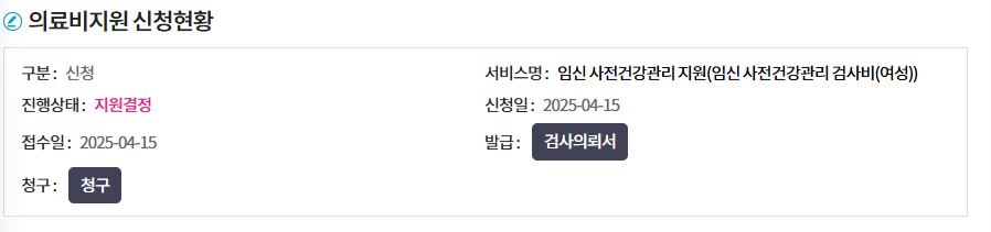 검사비 지원 클릭하면 바로 신청할 수 있는 페이지 나오구요,